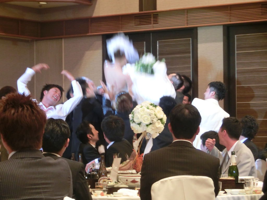 新郎 同級生に胴上げです。