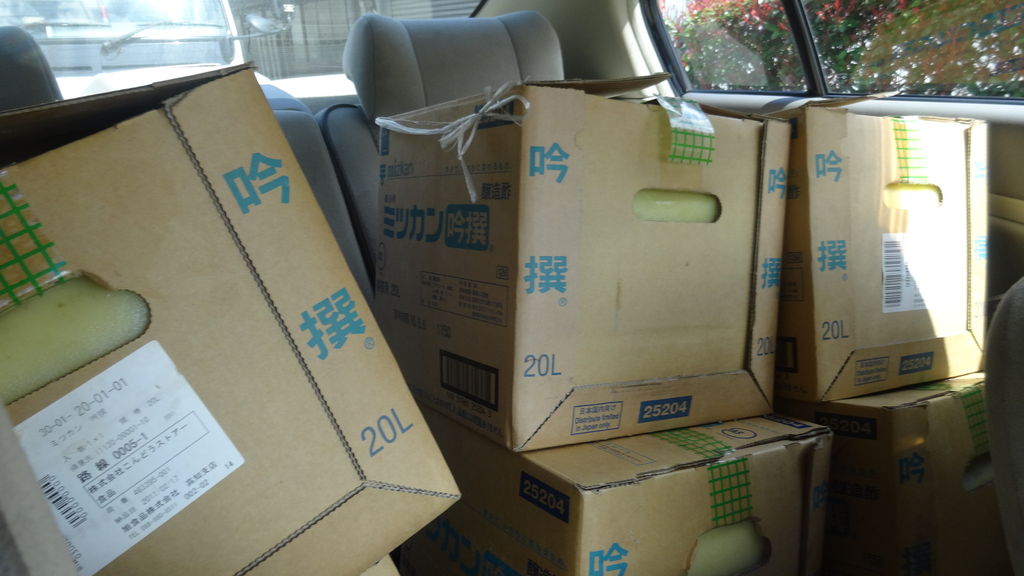 で この 1箱に 1升ビンの柚子が 12本分 はいっちゅうがよ