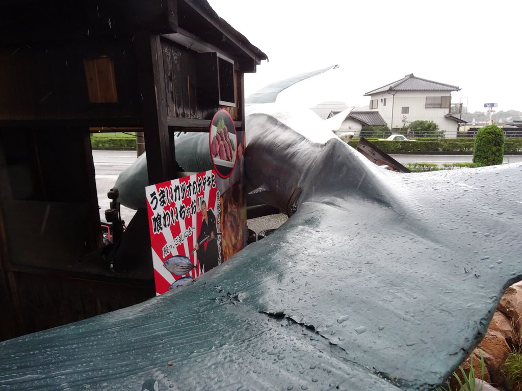 風で ジョーズが 倒れた。