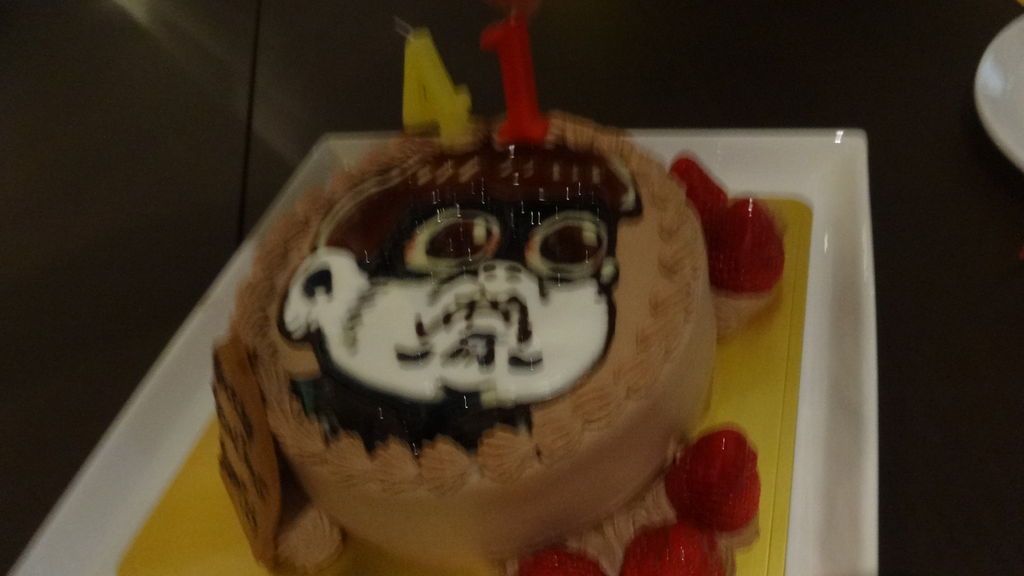 見たこともないような おじさんケーキに 14歳のローソクたてて