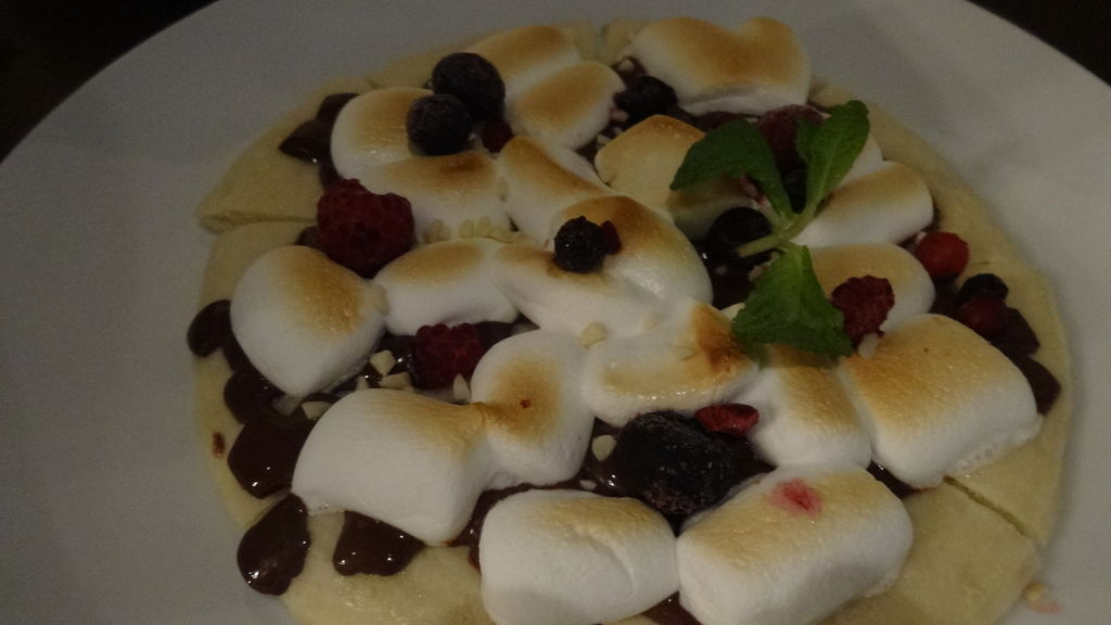 なんと ピザ生地に マシュマロ チョコをかけて オーブンで 焼いている