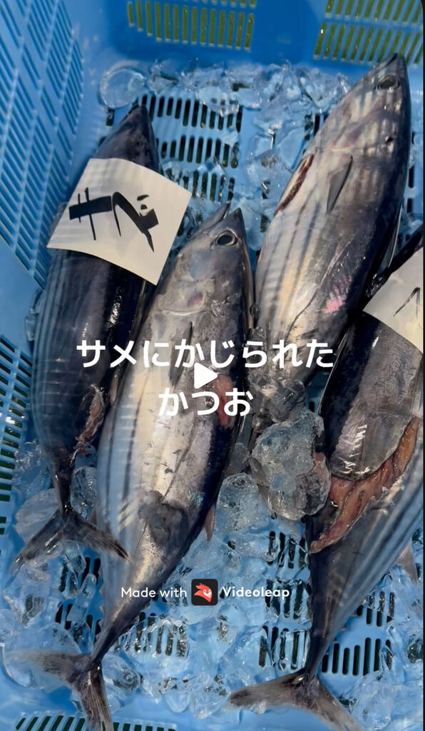 かつお仕入れきたらサメに噛まれたかつおが