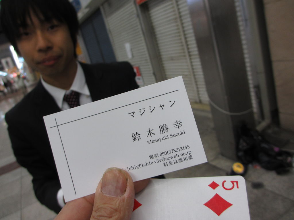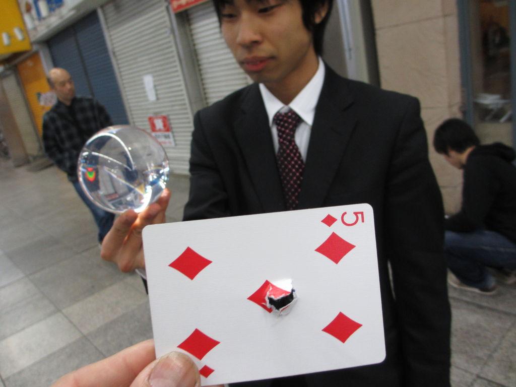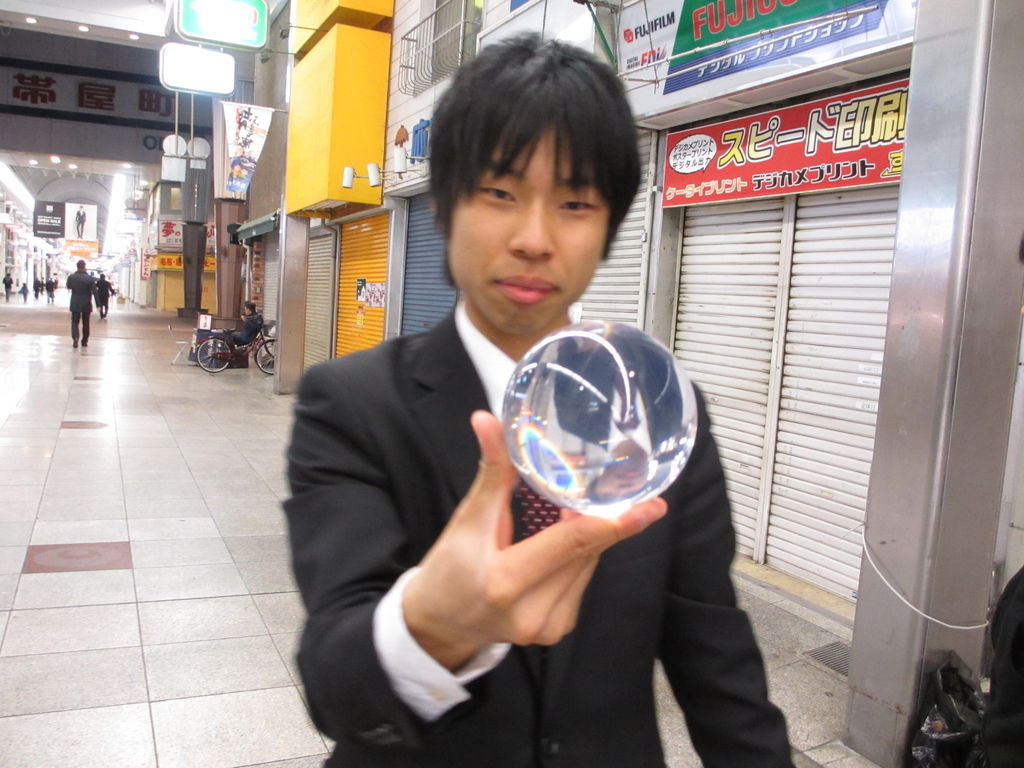 佐々木商店 出ますとほへ~ ガラス玉で マジックをする お兄さん。