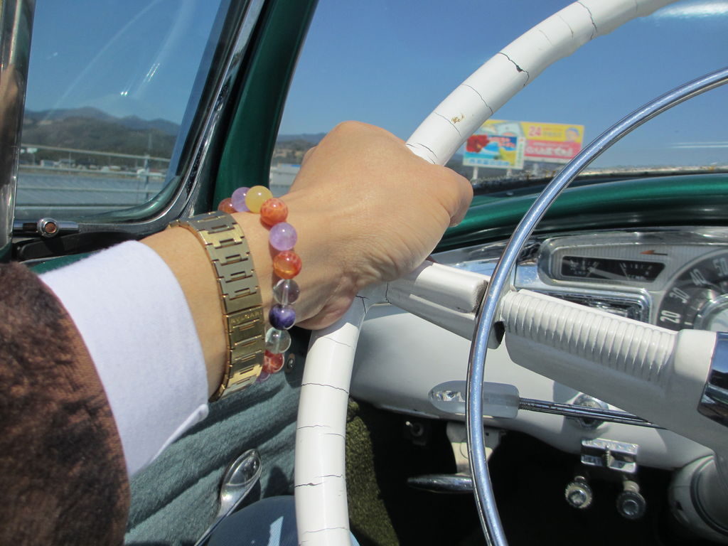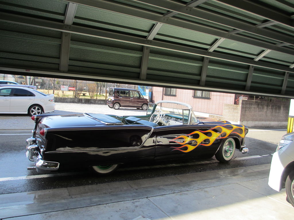 車のタイヤ止めがやけに大きく見えるチヤ。